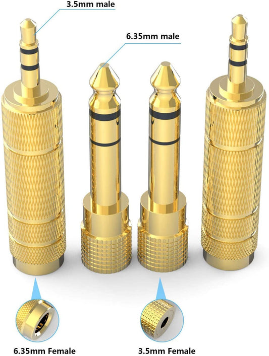 Headphone Adapter 6.35Mm (1/4 Inch) Male to 3.5Mm (1/8 Inch) Female and 3.5 Mm Male Plug to 6.35 Mm Female Jack, Audio Stereo TRS Converter Adapters (4 -Pack Gold Plated)